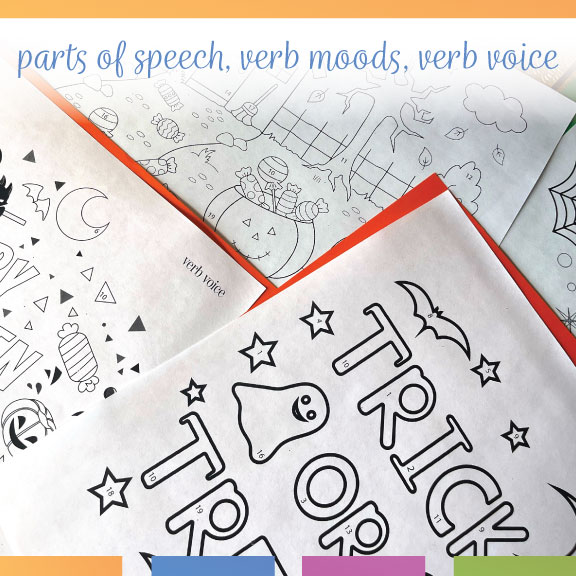 Diversify Halloween grammar lesson plans with these grammar coloring sheets and worksheets to study parts of a speech, verb moods, active and passive voice, sentence structure, and confusing words. This fall grammar bundle will add color to your middle school language arts classroom!
