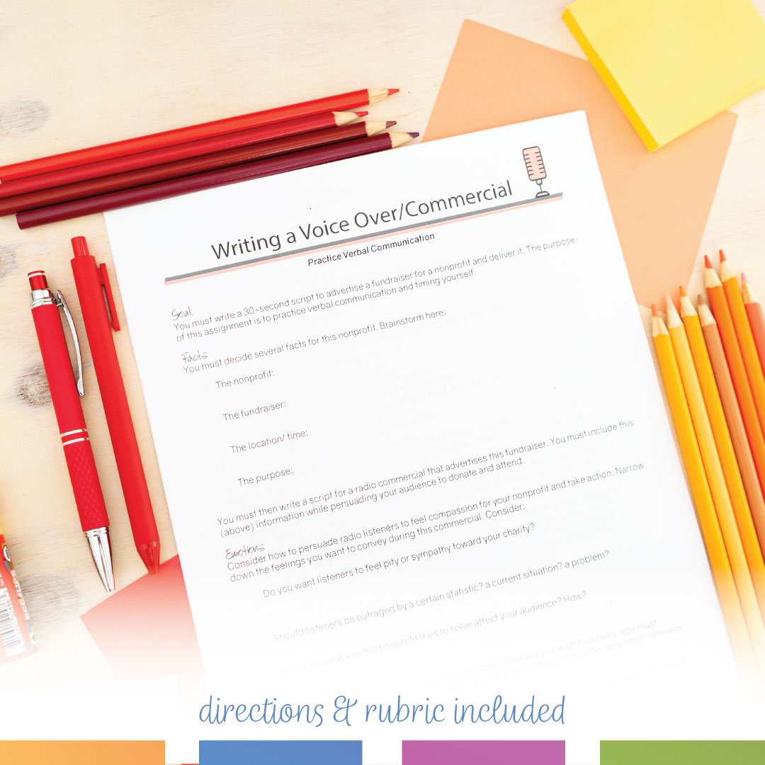√ Students will create and write a :30 radio commercial for a nonprofit that is hosting a fundraiser.