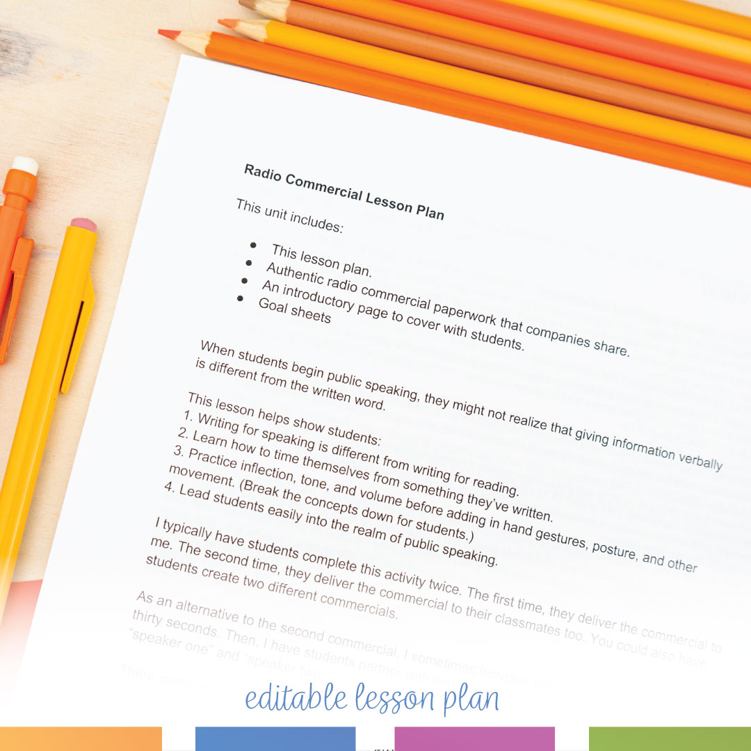 Need an opening public speaking activity? Are your students studying mass media? Have students write and present a radio commercial!